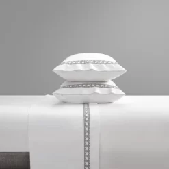 Aria 1500 Thread Count Cotton Sheet Set White With Gray Stripe Embroidery By Chic Home