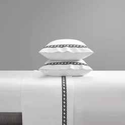 Aria 1500 Thread Count Cotton Sheet Set White With Black Stripe Embroidery By Chic Home