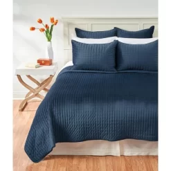Transform your space with the rich color and scintillating texture of the Lapis Velvet collection. This euro sham is crafted with a subtle yet unforgettable sheen and punctuated by rows of petite channel stitching. This versatile euro sham can be paired with classic accents and decor for an everyday look, or dressed with bold colors and chic pillows for a more formal regal feel. Crafted of soft polyester and machine washable for easy care. Coordinating accent pillow and quilt available separately.