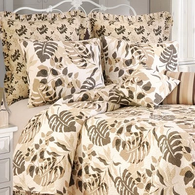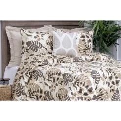 - Create your own island bungalow with the Silhouette Mini Set. Sleep sweetly surrounded by large palm leaves in neutral tones perfect for accessorizing. Reverse to an alternate look with just a flip of the quilt. Machine washable for easy care, this luxury oversized bedding set includes one quilt and two standard shams.