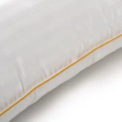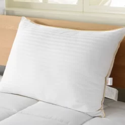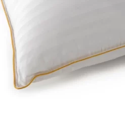 Experience luxurious comfort every night with the Cheer Collection Elegant Cotton Sateen Striped Down Alternative Pillow. Thoughtfully designed to mimic the softness of down, this pillow is filled with 100% polyester microfiber, offering you all the plushness without the high maintenance requirements of down. The medium firmness of this pillow ensures it conforms perfectly to your neck, head, and shoulders, paving the way for a peaceful slumber.Crafted with a 300-thread count cotton sateen fabric, it feels soft against the skin while its elegant striped pattern elevates the aesthetics of any bedding ensemble. Whether you’re a back, side, or stomach sleeper, this pillow adapts to your unique sleep posture. Additionally, it’s hypoallergenic, making it an excellent choice for those who are sensitive or prone to allergies.Caring for this luxury pillow is a breeze. The machine-washable construction allows you to maintain its fresh and clean look with minimal effort. Available in both Standard and King sizes, each pillow is meticulously measured for perfection. Our pillow also comes with a piped edge ensuring durability and longevity. Choose the Cheer Collection Elegant Cotton Sateen Striped Down Alternative Pillow and redefine your sleeping experience.