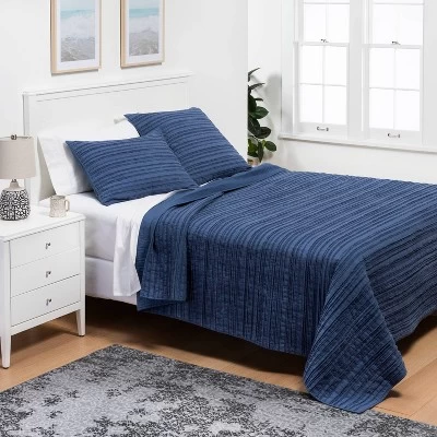 Create a rich, ripple-like effect in your bedding oasis with the Clipped Texture Quilt Collection from Threshold™. This jacquard bedding collection includes an array of serene, easy-to-coordinate colors, and comprises a selection of quilts and matching shams to decorate your room with a sophisticated look. Made from 100% cotton and fill, the quilts feature a charming clipped pattern to add subtle style and texture to any bed or living space. The shams match the quilts with their clipped textural style, and they have 6-inch envelope closures to keep the inserts neatly tucked with easy on and off. Plus, all the pieces in this cotton quilt and sham collection are machine-washable for added convenience.