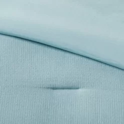 - Textured comforter and sham set in solid hue with a cream tasseled border