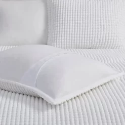 Create a space of pure relaxation and comfort with the Urban Habitat Easton 5 Piece Plush Clip Jacquard Duvet Cover Set. This solid plush clipped jacquard duvet cover features soft dots all over the top of bed, for a unique texture and look. The 2 matching shams pair perfectly with the cozy modern duvet cover, while 1 square and 1 oblong decorative pillow add sophisticated finishing touches. Machine washable for easy care, this modern duvet cover set also uses an antimicrobial treatment that provides built-in freshness protection, reducing the growth of odor causing bacteria to keep fabric lasting longer. A button closure at the foot end secures a padded insert within the duvet cover and inside corner ties prevent it from shifting (insert is NOT included). Items in the set may come in a rolled or compressed packaging, which will need to be fluffed up or steam ironed before use to remove wrinkles.