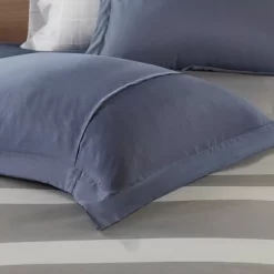The Eddie Striped Comforter Set with Bed Sheets offers a handsome update to transform your bedroom. A striped design on the face of the comforter is coupled with a solid reverse for a clean-cut look. The solid shams (1 in Twin/TwinXL) complement the top of the bed, while an oblong decorative pillow provides the finishing touch. Also included is a complete sheet set with a square print to complete the casual comforter set. This bedding set has antimicrobial treatment that provides built-in freshness protection, reducing the growth of odor causing bacteria to keep fabric lasting longer. It is also OEKO-TEX certified, meaning it does not contain any harmful substances or chemicals to ensure quality comfort and wellness. Items in the set may come in a rolled or compressed packaging, which will need to be fluffed up or steam ironed before use to remove wrinkles.