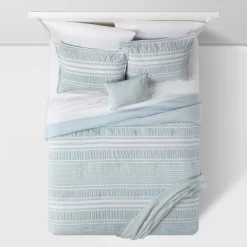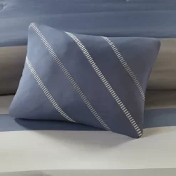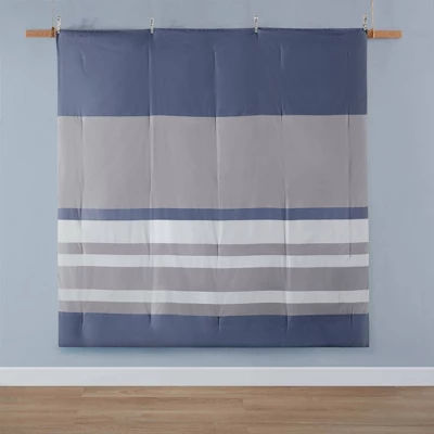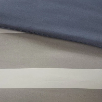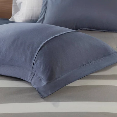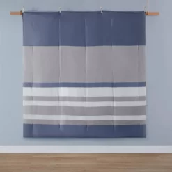 - Calm and serene blue and grey stripe pattern comforter set