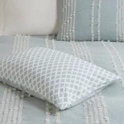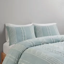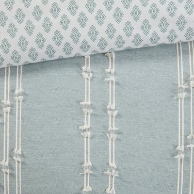 The INK+IVY Kara Cotton Jacquard Duvet Cover Mini Set offers an eye-catching update to your bedroom decor. This duvet cover features a 100% cotton jacquard striped design on the face with a diamond print on the reverse. Two matching shams coordinate with the duvet cover to complete a globally-inspired design. Machine washable for easy care, this unique duvet cover set brings style and comfort to your bedroom. Button closures allow you to place a comforter insert within the duvet cover and inside corner ties help prevent it from shifting. Insert is NOT included. This bedding set is also OEKO-TEX certified, meaning it does not contain any harmful substances or chemicals, ensuring quality comfort and wellness.