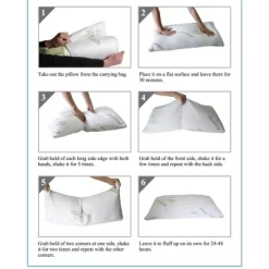 - Spot clean and air dry only. Each pillow comes vacuum sealed and rolled flat; Let the pillow air out for 12 hours, then remove the cover and run the pillow through the dryer for 20 to 30 minutes on no heat for maximum fluff.