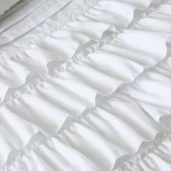 The Marley Ruffled Comforter Set will easily add grace and comfort to your bedroom décor. Beautiful flowing ruffles add charming appeal to the comforter and coordinating shams (1 for Twin/TwinXL sizes). A solid reverse creates a clean look, while two decorative pillows with fabric manipulation and embroidery provide a touch of casual elegance to the bedding set. Made from ultra-soft microfiber, this printed comforter set is machine washable for easy care.
