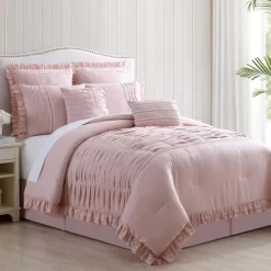 Indulge yourself in spa-like luxury with this 8-Piece Embellished Comforter Set. The polyester filling gives just the right fluffiness to this comforter set while the bar tacking details give a more formal finished look. Our luxuriously silky brushed microfiber material is constructed using techniques that include better stitching, stronger weaving, and softer materials; Ensuring a durable and soft touch. Fashion meets luxury with this set and is the perfect solution to your decorative and comfort needs.