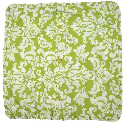 Add a vibrant element to your summer bedding with this green flower euro sham. This damask print pillow cover will provide a decorative touch to a guest or master bedroom delivered by its green and white color palette with a trendy flair of ruffle edges. Made from 100% high quality cotton, this sham has a button back closure with a fabric overlap for optimum coverage. The buttons are large, and color coordinated making this item as attractive from the back as it is from the front view.