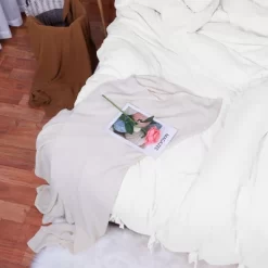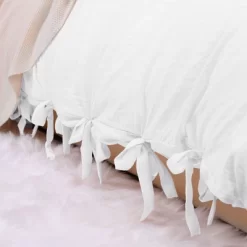 PiccoCasa Washed Cotton Solid With Bowknot Closure Design Duvet Cover Sets 3 Pcs With 2 Pillowcases Queen White