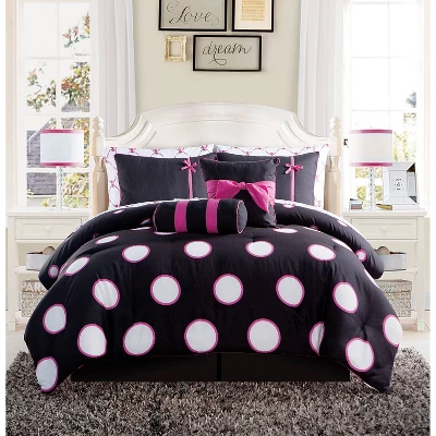 Add playful personality to your child’s space with the VCNY Home Sophie Polka Dot Bed-in-a-Bag Comforter Set, which features pretty polka dots and bows. Made of soft microfiber, the comforter’s oversized polka dots are beautifully offset with bow accents, a motif that is carried throughout the shams, flat and fitted sheets, pillowcases, and decorative pillows for a perfectly coordinated look.