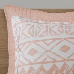 Invite eye-catching, modern style to your bedroom with the Mica 7 Piece Cotton Reversible Comforter Set. An oversized medallion with hand-drawn geometric details is displayed on the cotton base. The reverse flips the color scheme with a geometric print, creating a two distinct looks for your bed. Two shams mirror the design seen on the reverse of the comforter, while two quilted Euro shams add texture to the bedding set. A square decorative pillow with fabric manipulation and an embroidered oblong pillow complete the comforter set. Machine washable for easy care, this bedding set is OEKO-TEX certified, meaning it does not contain any harmful substances or chemicals, ensuring quality comfort and wellness.