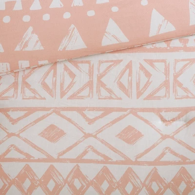 - • Oversized medallion print at the center of the comforter reverses to a geo print